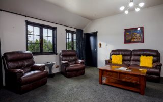 As the images below show, there is a spacious Lounge area with a set of comfortable leather couches and a wall-mounted, adjustable Flatscreen TV.